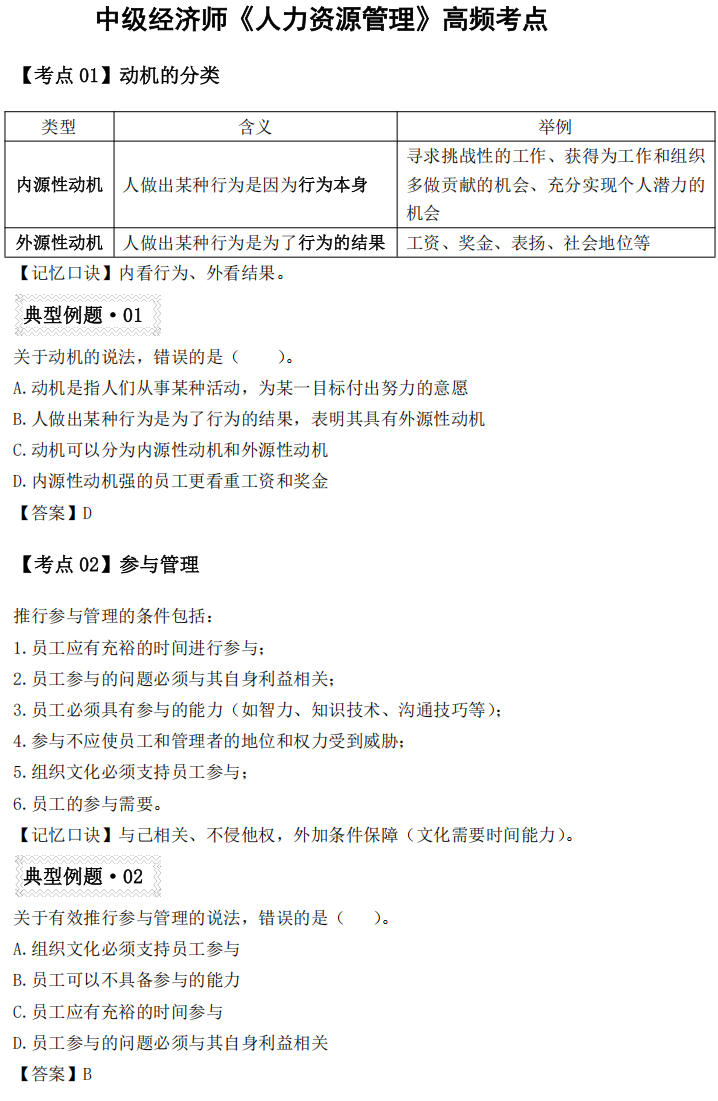 中经【人力】历年重复考点!84分必背!