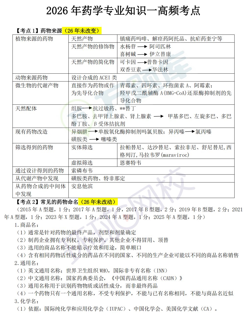 2026年执业药师《西药一》必背高频考点