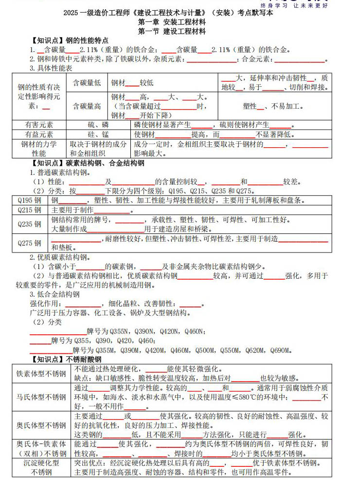 一级造价工程师《安装计量》考点默写本