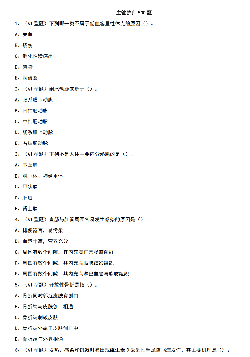 2026年中级主管护师必刷500题(全)